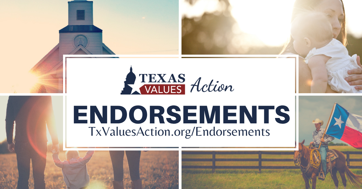 Texas Values Action will make endorsements in the 2026 election cycle. We will only endorse candidates who share in our mission to ensure Texas is a state in which religious liberty flourishes, families prosper, and every human life is valued. Candidates must be able to demonstrate a firm commitment to protecting religious liberty, marriage and family, and innocent human life.